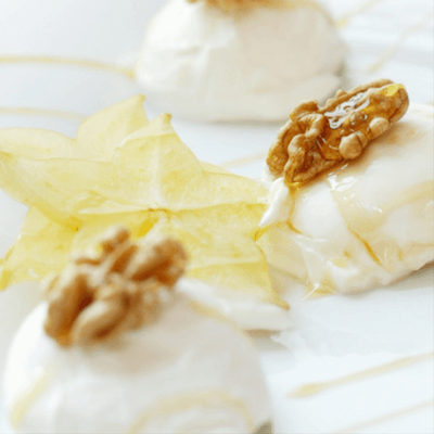 Ca. 130 g griechischer Joghurt, verfeinert mit Honig und Walnüssen. Portion für 1 Person.